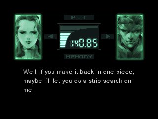 C'mon, I can't believe I'm being hit on by the famous Solid Snake... But I'm surprised, you're very frank for a trained killer.